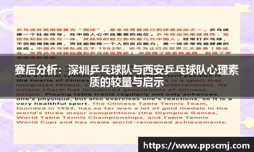 本文围绕武汉乒乓球队的心理素质展开探讨,旨在分析如何在比赛中保持最佳状态与应对压力。首先,文章将阐述心理素质的重要性,强调良好的心理状态对于运动员在高强度比赛中的表现至关重要。接着,从情绪管理、集中注意力、应对压力和团队协作四个方面进行深入分析,探讨这些因素如何影响运动员的比赛表现,以及相应的训练策略。最后,总结出武汉乒乓球队在提升心理素质方面的有效方法,为未来的训练和比赛提供参考。 1、心理素...